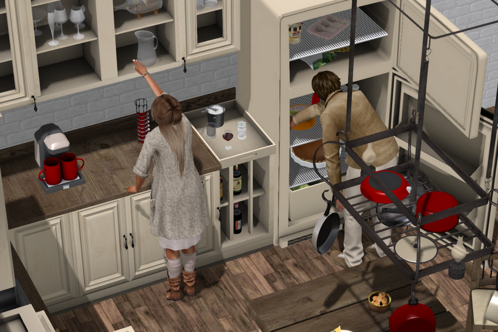 – 40 Kitchen (food & drink preparation, cleaning, eating) single and couple animations.