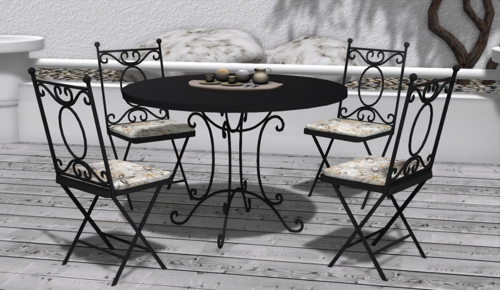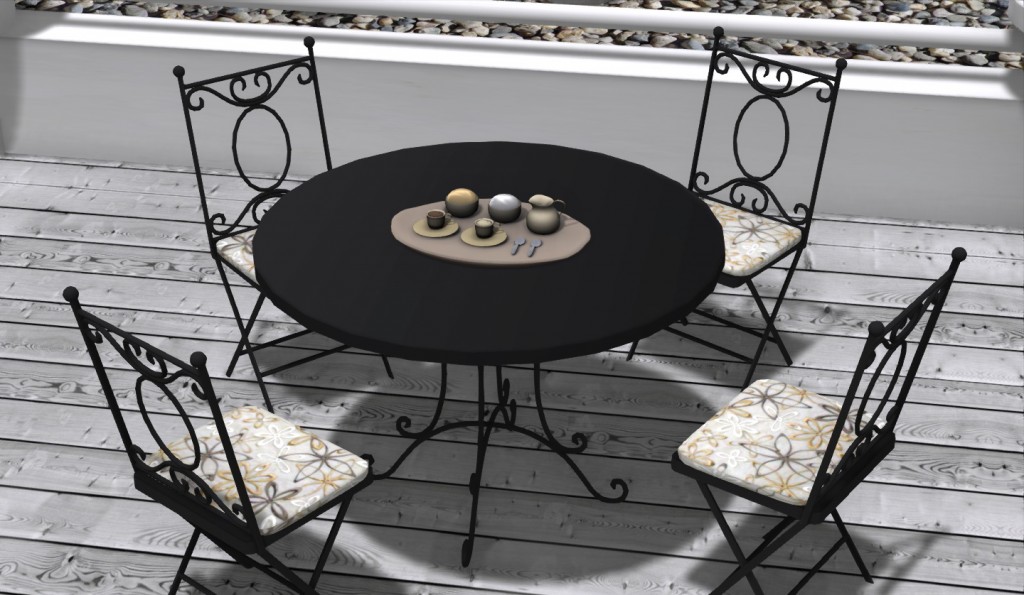 Every chair has 7 hight quality sit animations. Coffee set has 17 prims.