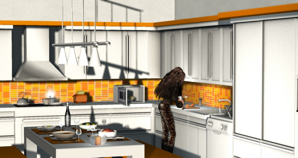 Turn your fantasies to reality with modern fully operational, functional and animated kitchen. You can do anything in this kitchen: eat, drink, kiss, cook, dish wash, snack, lap dance, cuddle, make love….