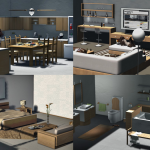 Kitchen cabinets have 2 parts, fridge, closet, and oven so you can adjust easily for your space. The kitchen has 6 cuddle animations, 14 sex animations dish washing animations, chopping animations, and cooking animation, you can take tea from teapot, toast from a toaster, cocktail from a blender, a plate of drumsticks, and plate with pie from a oven, wine from the wine rack, coffee from coffee maker, plate of fruits…